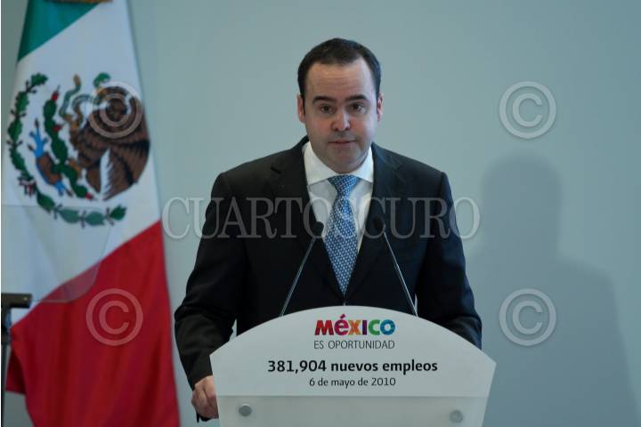 MÉXICO, D.F. 06MAYO2010.- El presidente Felipe Calderón acompañado de Bruno Ferrari Garcia, director general de ProMéxico y Gerardo Ruíz Mateos, secretario de Economía durante el evento México es Oportunidad para la Inversión Extranjera que se realizo en el hotel St. Regis. FOTO: RODOLFO ANGULO/CUARTOSCURO.COM