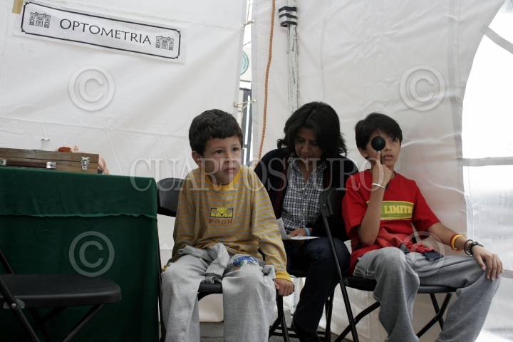 MEXICO, D.F. 13AGOSTO2005.- Niños esperan su turno para relizar el examen optico durante de la feria de utiles escolares, en la explanada de la delegación Venustiano Carranza. FOTO: Osvaldo Aguilar/CUARTOSCURO.COM