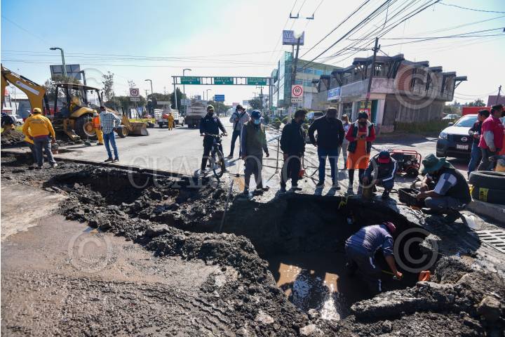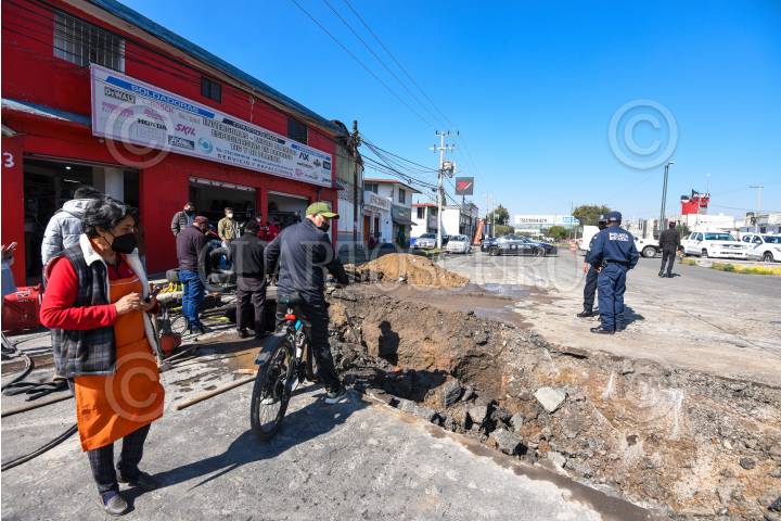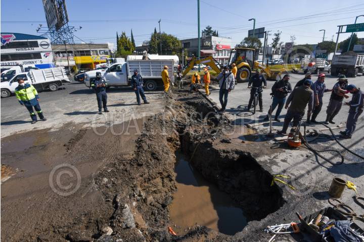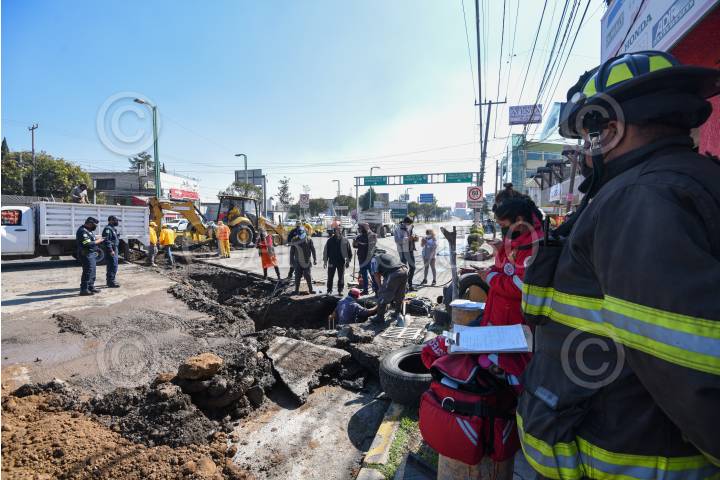 Se registran tres hundimientos en la vialidad Alfredo del Mazo en el municipio de Toluca, PC realizó el agrisó aliento de la zona, podrían ser parte de una falla geológica en la zona.