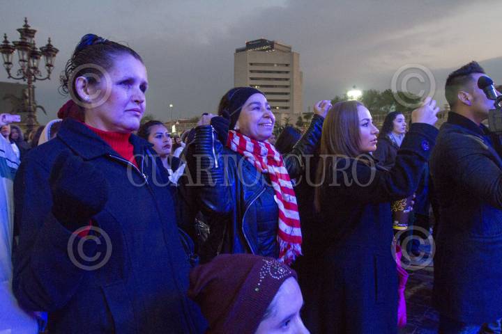 MONTERREY, NUEVO LEÓN, 28ENERO2017.- Decenas de personas se reunieron en la Macroplaza para ralizar Oración en Cadena por la paz. El evento llamado Nuevo León unido en oración se creo por los recientes actos de violencia que se han vivido en el estado. FOTO: GABRIELA PÉREZ MONTIEL /CUARTOSCURO.COM