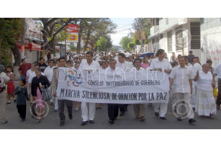 CHILPANCINGO. GUERRERO 17JUNIO2006.- Más de 500 ciudadanos pertenecientes a siete organizaciones religiosas encabezados por el obispo de la diocesis Chilpancingo-Chilapa Alejo Zavala Castro, marcharon por las principales calles y avenidas de la ciudad para orar y pedir por la paz, esto ante la ola de violencia que se ha desatado en el estado a ultimas fechas. FOTO: Oscar Alvarado/CUARTOSCURO.COM