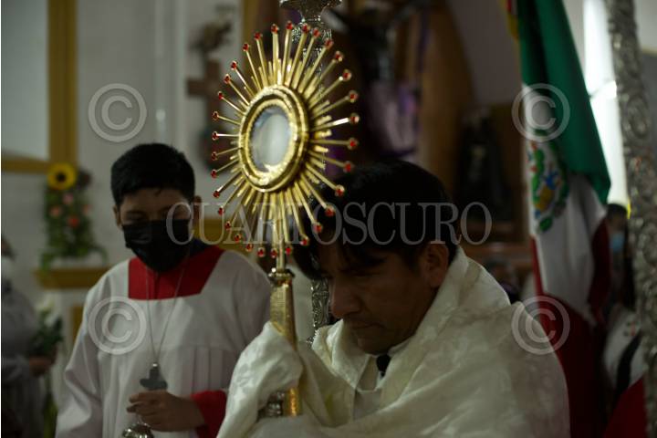 Vecinos de la colonia Santa Crucita asistieron a la Eucaristía Dominical en la Catedral San Bernardino, alcaldía Xochimilco