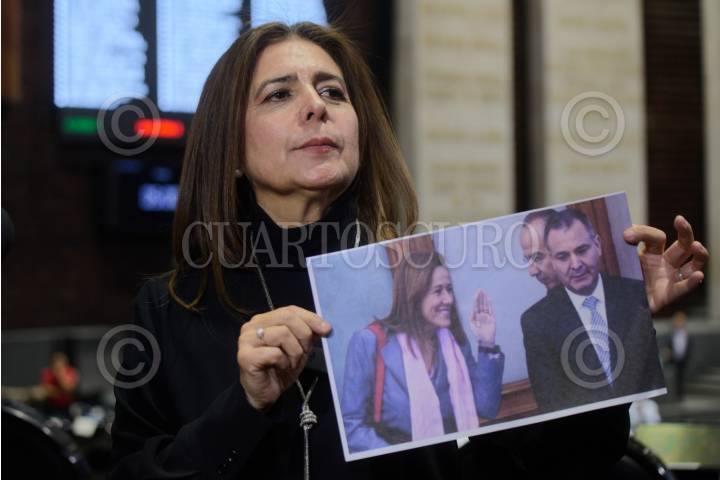 Sesión ordinaria de la Cámara Alta, este miércoles. Medios de comunicación tratan de obtener una entrevista con la Senadora Rocío Abreu, aquí en el salón de plenos.