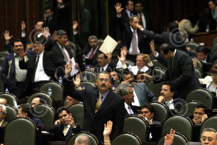 México, D.F. 29 ABRIL 2004.- Al centro el priísta Manlio Fabio Beltrones, ex gobernado de Nuevo León, durante la votación de la última sesión del periódo ordinario. FOTO: Sandra Perdomo/CUARTOSCURO.COM