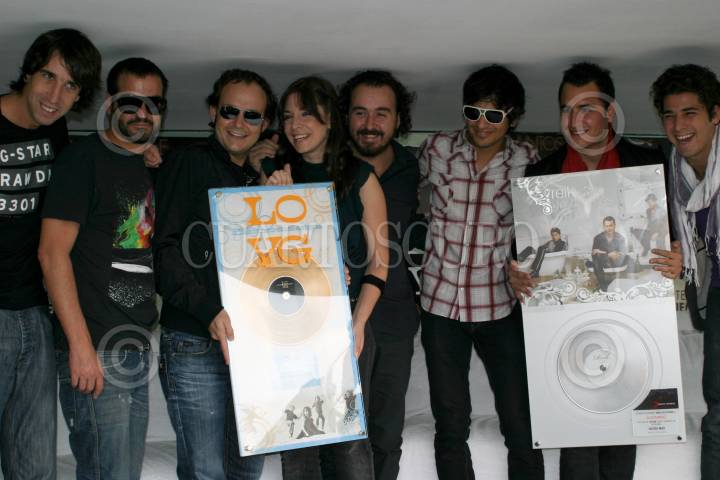MÉXICO, D.F., 22SEPTIEMBRE2009.- Haritz Garde (batería), Álvaro Fuentes (bajo), Pablo Benegas (guitarra), Leire Martínez (vocalista) y Xabi San Martín (teclados), del grupo de pop español La Oreja de Van Gogh y durante la presentación de su disco de oro por sus exitosas ventas en la república mexicana, y Gilberto "Bibi" Marin (guitarra eléctrica), Jesús Alberto Navarro (vocalista) y Julio Ramirez Eguia (guitarra acustica) de la agrupación mexicana Reik, durantela presentación de su gira de conciertos (Juntos e Inolvidable Tour). esto sucedió en las instalaciones de un conocido hotel de la zona de Polanco. FOTO: MISAEL VALTIERRA/CUARTOSCURO.COM