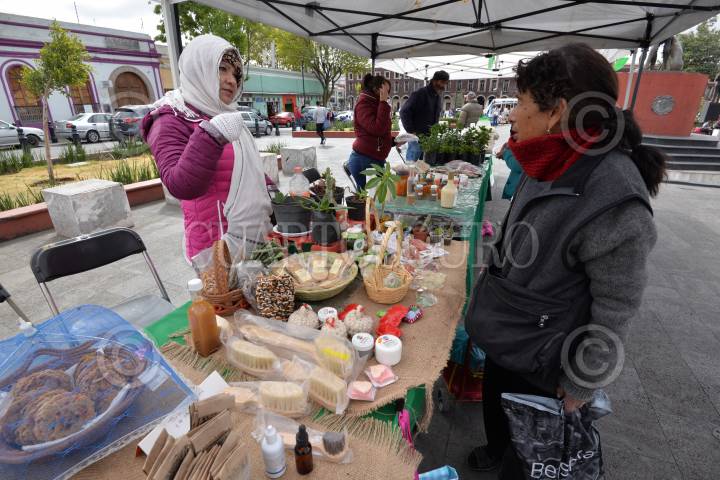 TOLUCA, ESTADO DE MÉXICO, 05FEBRERO2018.- Desde muy temprana hora pequeños productores se instalaron en la Plaza España de Toluca, ofreciendo frutas y legumbres, productos orgánicos que producen en sus hogares, a precios muy bajos, dando una alternativa saludable para la alimentación de la gente. FOTO: ARTEMIO GUERRA BAZ/CUARTOSCURO.COM