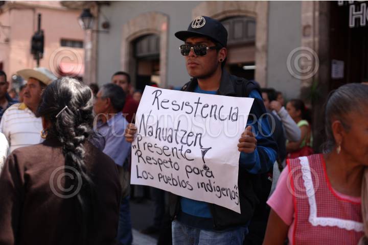 MORELIA, MICHOACÁN, 22FEBRERO2016.- Un grupo de alrededor de 200 personas, integrantes del Supremo Consejo de Pueblos Originarios de Michoacán realizarón una marcha pacífica del obelisco a Lázaro Cárdenas en dirección al Congreso local de Michoacán. De acuerdo con informes de distintos integrantes del Consejo la manifestación tiene como objetivo reunirse con la Comisión de Pueblos Indígenas del legislativo local. Los manifestantes buscan a través del Congreso de Michoacán se asigne el presupuesto a cada comunidad de los pueblos originarios y que Seguridad Pública del estado respete a sus autoridades que ellos tienen asignados mediante sus usos y costumbres. FOTO: ALAN ORTEGA /CUARTOSCURO.COM
