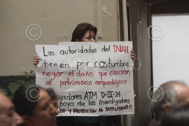 MÉXICO, D.F., 29AGOSTO2012.- El movimiento por la defensa del Instituto Nacional de Antropología e Historia y de los bienes Arqueológicos, Históricos y Culturales de la Nación ofreció una conferencia de prensa para denunciar la construcción de un museo sobre las ruinas de la zona arqueológica de Tzintzuntzan en el estado de Michoacán, además de la zona arqueológica de Loreto en Puebla la cual según los investigadores ha desaparecido. FOTO: FRANCISCO RODRÍGUEZ / CUARTOSCURO.COM