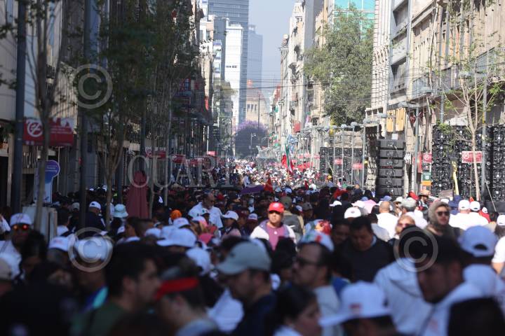 CIUDAD DE MÉXICO, 09MARZO2025. Simpatizantes acuden a la “Asamblea informativa” en el zócalo de la Ciudad de México, encabezada por Claudia Sheinbaum, presidenta de México por la calle de Madero. Luego de haber llegado a un acuerdo con el presidente estadounidense Donald Trump por medio de una llamada telefónica y posponer la entrada en vigor de aranceles hasta el mes de abril. FOTO: EDGAR NEGRETE LIRA/CUARTOSCURO.COM
