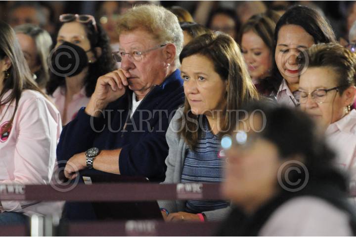 CIUDAD DE MÉXICO, 08OCTUBRE2023. - El publicista Carlos Alazraki y la diputada panista, Margarita Zavala, escuchan la participación de Xóchitl Gálvez. FOTO: DANIEL AUGUSTO /CUARTOSCURO.COM