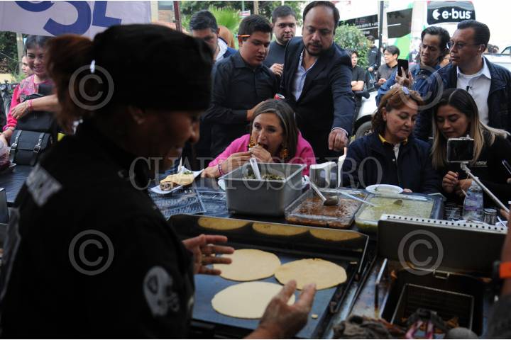 CIUDAD DE MÉXICO, 08OCTUBRE2023. - Xóchitl Gálvez se detuvo en un puesto de tacos luego de participar en los DiálogoX Ciudadanos. FOTO: DANIEL AUGUSTO /CUARTOSCURO.COM