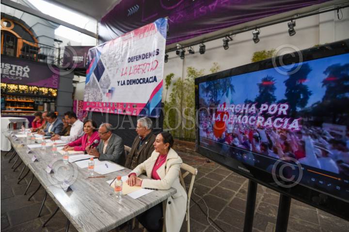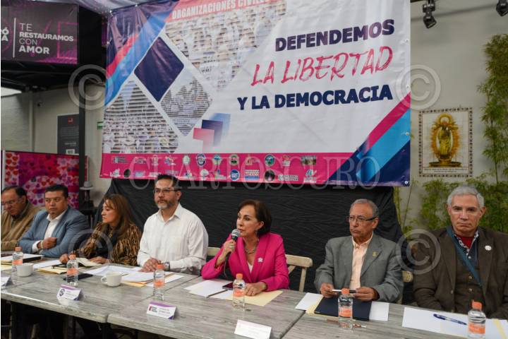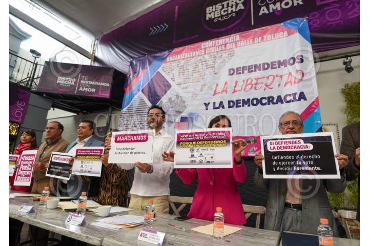 TOLUCA, ESTADO DE MÉXICO, 13FEBRERO2024.- Integrantes de diversas organizaciones civiles en Toluca anunciaron su participación en la Marcha por la Democracia que se realizará en diversas ciudades de la República Mexicana el próximo domingo 18 de febrero. FOTO: CRISANTA ESPINOSA AGUILAR /CUARTOSCURO.COM