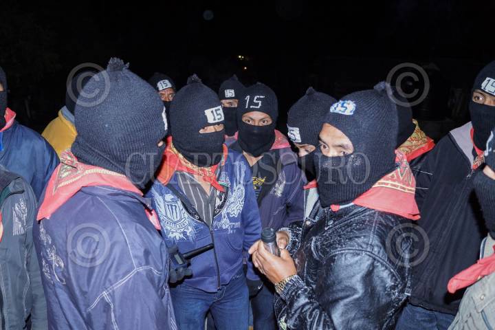 OVENTIC, CHIAPAS, 01ENER02013.- Hoy se cumplen 19 años de la aparición pública y declaración de guerra que el Ejercito Zapatista de Liberación Nacional (EZLN), hizo al Gobierno Federal y al Ejército Mexicano. El EZLN en su mayoría indígenas choles, zoques, tzotziles, tzeltales, mames y tojolabales; reaparecieron el 21 de diciembre pasado con la toma de las mismas cabeceras municipales tomadas aquel 01 de diciembre de 1994, pero ahora de manera pacifica. Los pueblos zapatistas son un referente organizativo y de lucha a nivel mundial por el grado en que han cambiado sus condiciones de vida en sus territorio autonomo. En la imagen, zapatistas vigilan la entrada a la fiesta y evento para los pueblos que en el Caracol de Oventic realizaron la madrugada de este día. El Caracol Resistencia y Rebeldía por la Humanidad o Caracol de Oventic, congrega los Municipios Autónomos Zapatistas de los altos de Chiapas: San Andrés Sacamch’en de los Pobres, San Juan de la Libertad, San Pedro Polhó, Santa Catarina, Magdalena de la Paz, 16 de febrero y San Juan Apóstol Cancuc. FOTO: ADOLFO VALTIERRA /CUARTOSCURO.COM