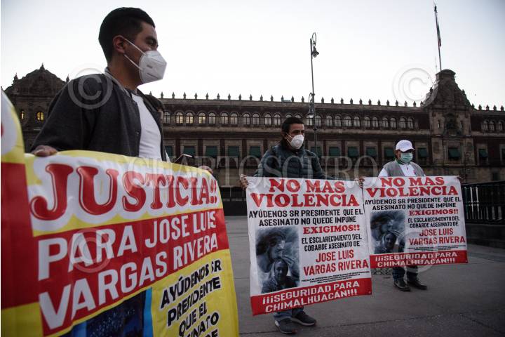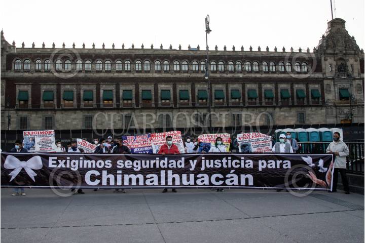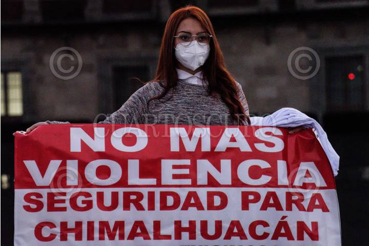 Habitantes de Chimalhuacán se manifestaron al exterior de Palacio Nacional para exigir al gobierno federal seguridad y justicia ante la ola de violencia que se vive en su municipio.