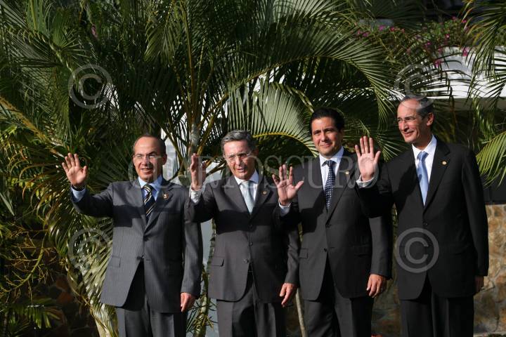 PANAMA, PANAMA., 16ENERO 2009.- Felipe Clderon Hinojosa Presidente de México, saluda durante la fotografía oficial , durante la jornada presidencial Colombia, Guatemala México y Panama cnontra la delincuencia organizada. FOTO: ALFREDO GUERRERO/CUARTOSCURO.COM