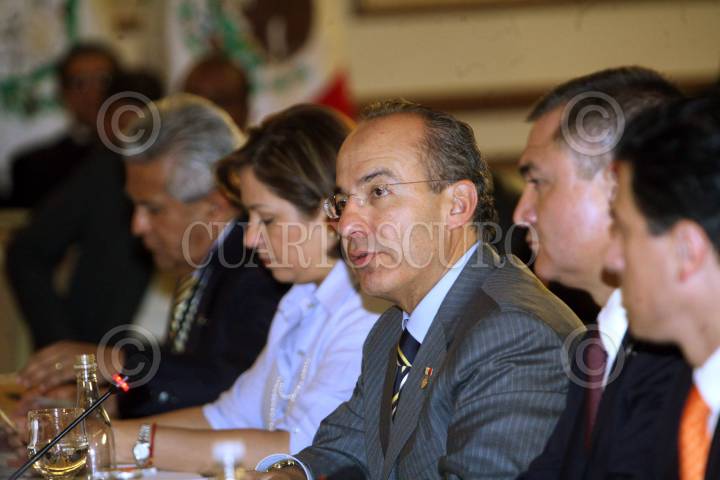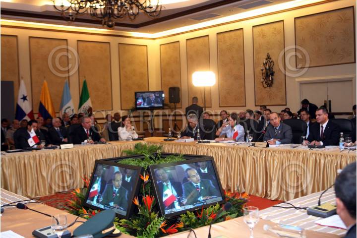 PANAMA, PANAMA.,16 ENERO 2009.- Felipe Calderon Hinojosa Presidente de México durante la inaguración de la jornada presidencial Colombia,México, y Panama contra la delincuencia organizada. FOTO: ALFREDO GUERRERO/CUARTOSCURO.COM