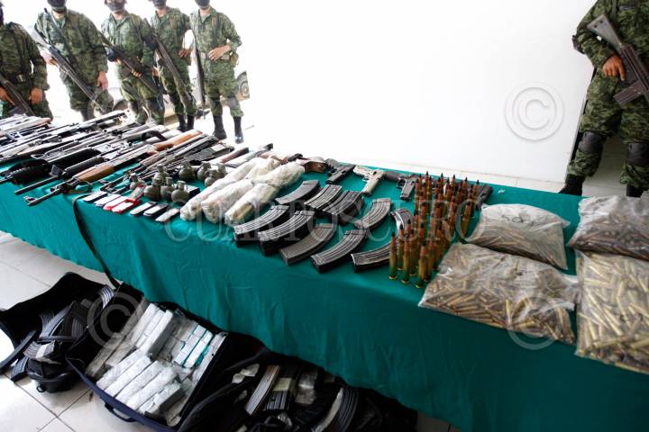 LOS HERRERA, NUEVO LEON, 19MARZO2010.- Elementos del Ejercito lograron la liberación de dos personas que se encontraban privadas de su libertad durante un enfrentamiento con presuntos integrantes de la delincuencia organizada. Los hechos tuvieron lugar cuando los efectivos militares realizaban reconocimientos terrestres, resultando muertos 4 agresores; se aseguraron 6 armas largas, 2 armas cortas, 1724 cartuchos de diferentes calibres, 55 cargadores para diferentes armas, 7 granadas de fragmentación, 5 vehículos de diferentes características y equipo diverso. FOTO: CUARTOSCURO.COM