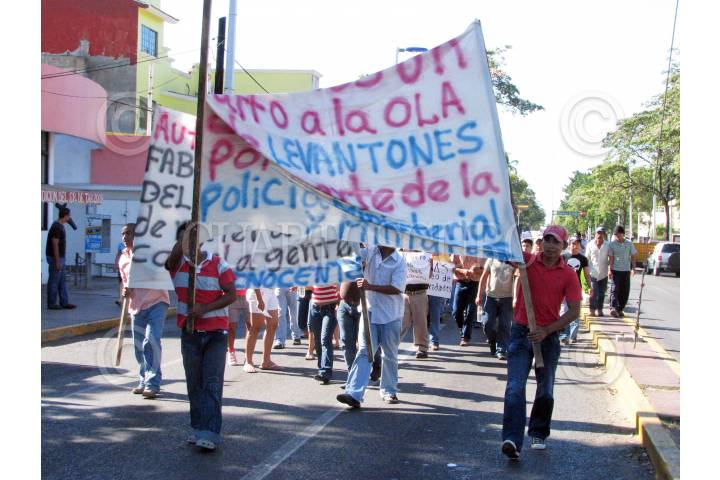 VILLAHERMOSA, TABASCO, 17FEBRERO2009.- Cientos de personas de distintas comunidades del estado, marcharon por las principales avenidas con pancartas y carteles de cese a la violencia y actos del crimen organizado. FOTO. MARCO POLO GUZMÁN HERNÁNDEZ/CUARTOSCURO.COM