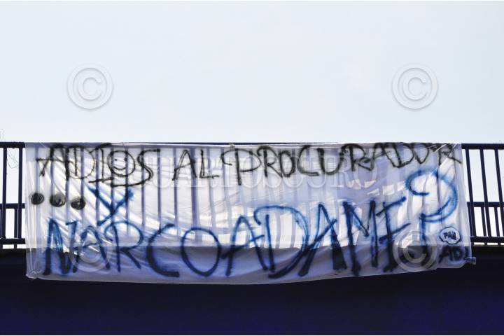 CUERNAVACA, MORELOS.,17MAYO2009.- Despues de las renuncias de altos mando de seguridad en Morelos Una narcomanta fue dejada en un puente peatonal de Cuernavaca en la que se critica la presunta relación del Gobernador Marco Adame con el crimen organizado. FOTO: LUIS GIRON/CUARTOSCURO.COM