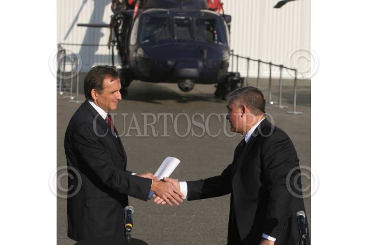 MÉXICO, D.F., 24NOVIEMBRE2010.- Carlos Pascual, embajador de Estados Unidos en México y Genaro Garcia Luna, Secretario de Seguridad Pública Federal, durante la entrega de tres helicópteros tipo Black Hawk entregados por el gobierno de Estados Unidos como parte de la Iniciativa Merida en apoyo a la lucha del gobierno mexicano contra el crimen organizado. FOTO: SAÚL LÓPEZ/CUARTOSCURO.COM
