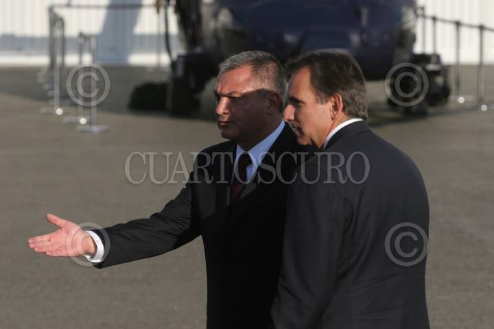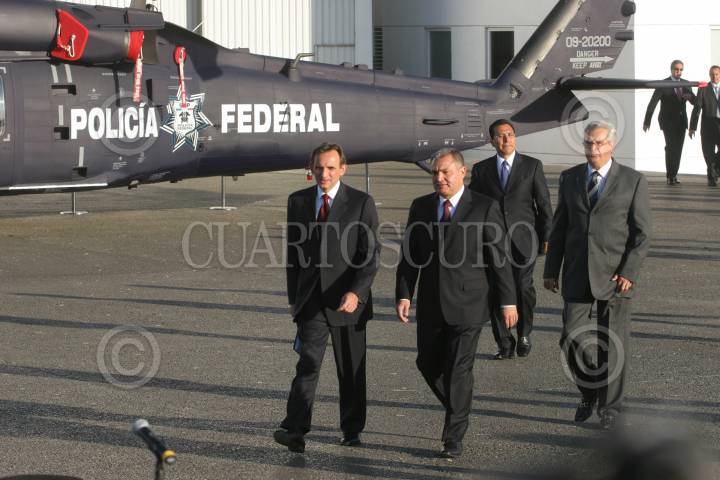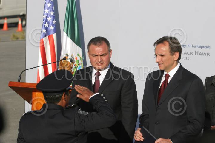 MÉXICO, D.F., 24NOVIEMBRE2010.- Carlos Pascual, embajador de Estados Unidos en México y Genaro Garcia Luna, Secretario de Seguridad Pública Federal, durante la entrega de tres helicópteros tipo Black Hawk entregados por el gobierno de Estados Unidos como parte de la Iniciativa Merida en apoyo a la lucha del gobierno mexicano contra el crimen organizado. FOTO:SAÚL LÓPEZ/CUARTOSCURO.COM