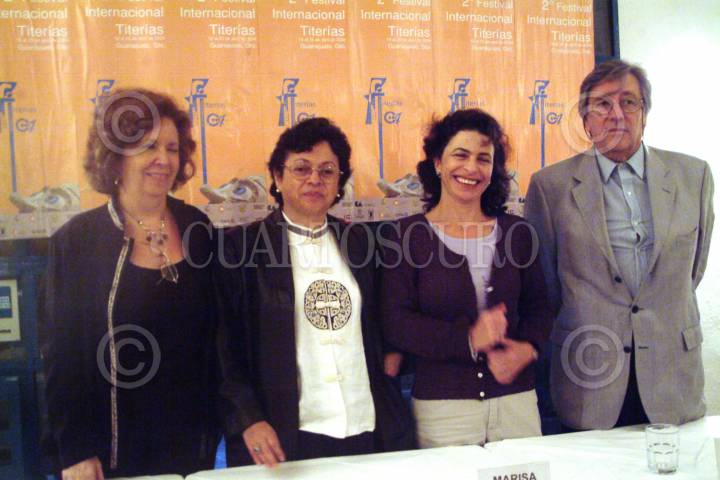 México D.F 14 Abril 2004.- Lourdes Perez Gay, encargarda de teatro Infantil del INBA, Esther Fernández Palacios, Marisa Jímenez y Lucio Espindola organizadores del Festival Internacional de Titerías 2004 que se llevarà a cabo en la ciudad de Guanajuato. FOTO: Eunice Adorno/CUARTOSCURO.COM