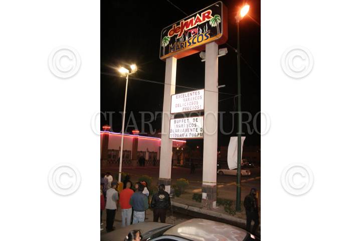 CIUDAD JUÁREZ, CHIHUAHUA, 29NOVIEMBRE2008.- Ocho hombres fueron ejecutados en el interior del restaurante Mariscos del Mar en la avenida Gómez Morín y Júpiter de la colonia Satélite al nororiente de la ciudad, testigos indican que entro un grupo de encapuchados y se dirigieron hacia donde estaban las victimas a quienes tiraron al piso para abrir fuego en su contra. FOTO: BIENINFORMADO.COM/CUARTOSCURO.COM