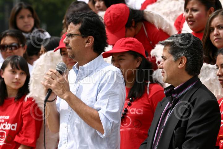 MÉXICO, D.F., 05SEPTIEMBRE2009.- Alejandro Rojas Diaz, secretario de Turismo y Javier Hidalgo titular del Instituto de la Juventud del Distrito Federal dieron a conocer el programa de promotores turísticos denominados “Ángeles Turísticos” para orientar a los turistas nacionales y extranjeros; dicho evento fue puesto en marcha en el Ángel de la Independencia. FOTO: RODOLFO ANGULO/CUARTOSCURO.COM