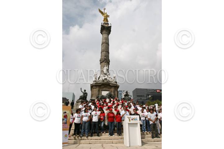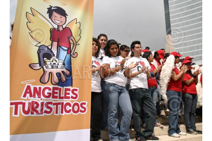 MÉXICO, D.F., 05SEPTIEMBRE2009.- Los secretarios de Turismo y del Instituto de la Juventud del Distrito Federal dieron a conocer el programa de promotores turísticos denominados “Ángeles Turísticos” para orientar a los turistas nacionales y extranjeros; dicho evento fue puesto en marcha en el Ángel de la Independencia. FOTO: RODOLFO ANGULO/CUARTOSCURO.COM