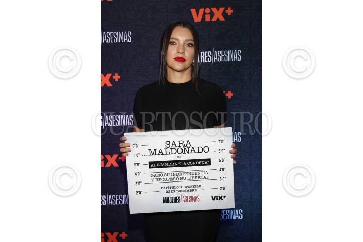 Sara Maldonado a su paso por la alfombra roja y presentación de la serie “Mujeres Asesinas”, que será transmitida por la plataforma VIX+.