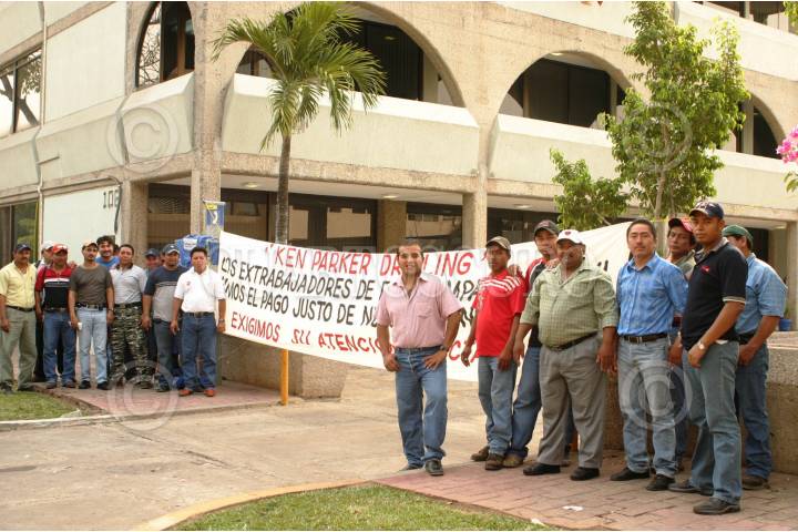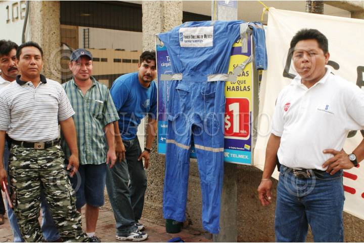 VILLAHERMOSA, TABASCO, 11MAYO2006.- Ex empleados de la empresa originaria de los Estados Unidos; Parker Drilling, se manifestaron en el edificio con sede en el Estado, ya que se niegan a pagar atrasos en semanas, horas extras y bonificaciones, por lo que tampoco los quieren liquidar. FOTO: Marco Polo Guzmán Hernández/CUARTOSCURO.COM