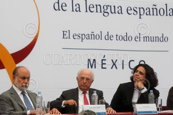 MÉXICO, D.F., 17AGOSTO2011.- José G. Moreno de Alba, Miembro de numero de la Academia Mexicana de la Lengua junto a Jaime Labastida, Director de la Academia Mexicana de la Lengua y Consuelo Saizar, Presidenta del Conaculta durante la conferencia donde se presento la nueva edición del libro de Ortografía de la lengua española. FOTO: ENRIQUE ORDÓÑEZ/CUARTOSCURO.COM