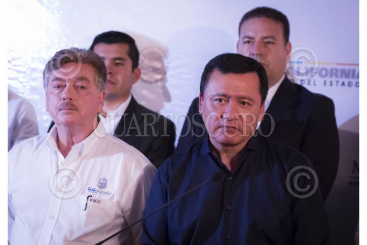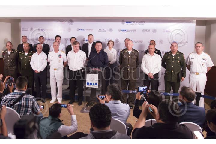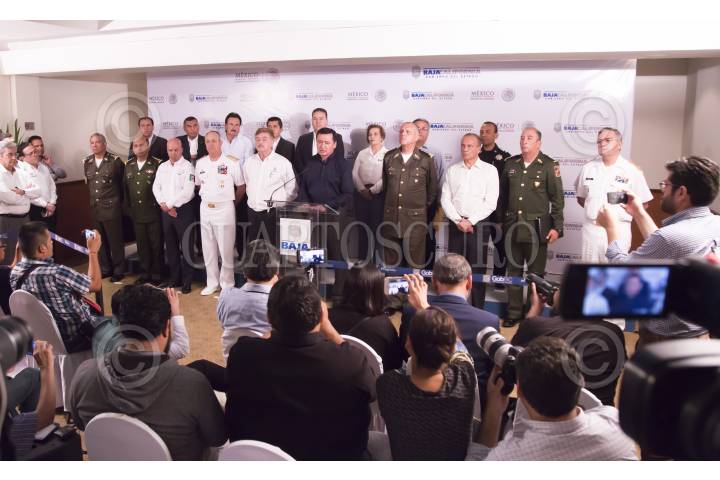 TIJUANA, BAJA CALIFORNIA, 17JULIO2017.- El Secretario de Gobernación Miguel Angel Osorio Chong en compañía de Francisco Vega de la Madrid gobernador del Estado y Salvador Cienfuegos, Secretario de la Defensa Nacional de México, encabezaron una conferencia de prensa después de sostener una reunión privada por cuatro horas donde se abordó el tema de la inseguridad que afecta a Baja California. FOTO: CHRISTIAN SERNA/CUARTOSCURO.COM