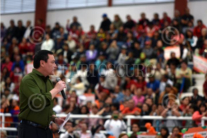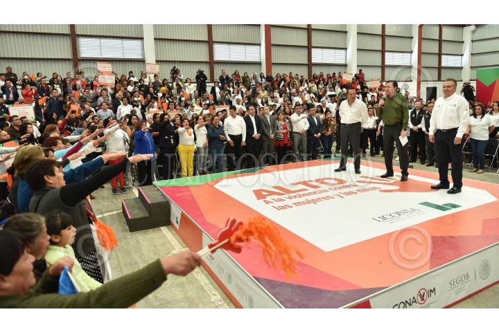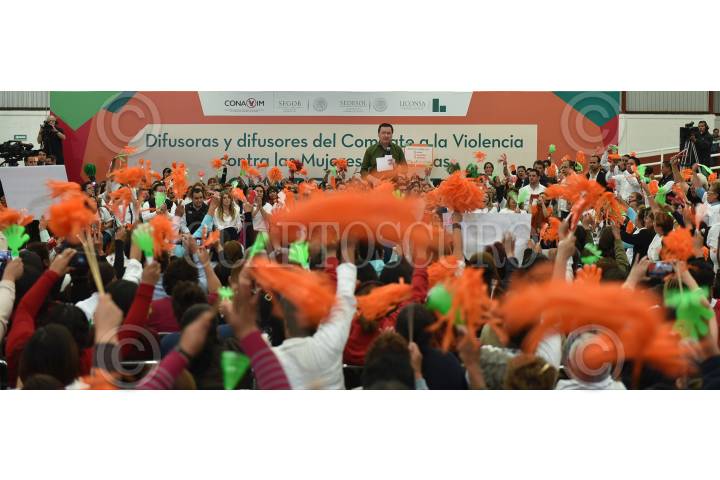 CIUDAD DE MÉXICO., 22AGOSTO2017.- Miguel Ángel Osorio Chong, Secretario de Gobernación tomó protesta a Difusoras y Difusores del Combate a la Violencia contra las Mujeres y las Niñas en las instalaciones del deportivo Oasis de la delegación Magdalena Contreras. FOTO: SEGOB /CUATOSCURO.COM