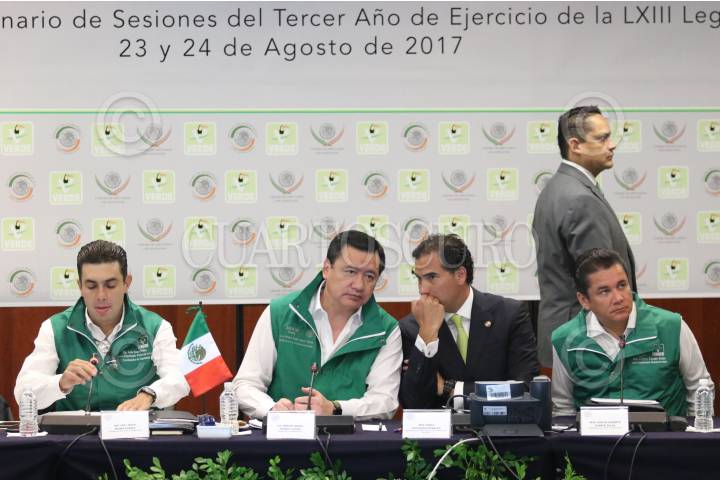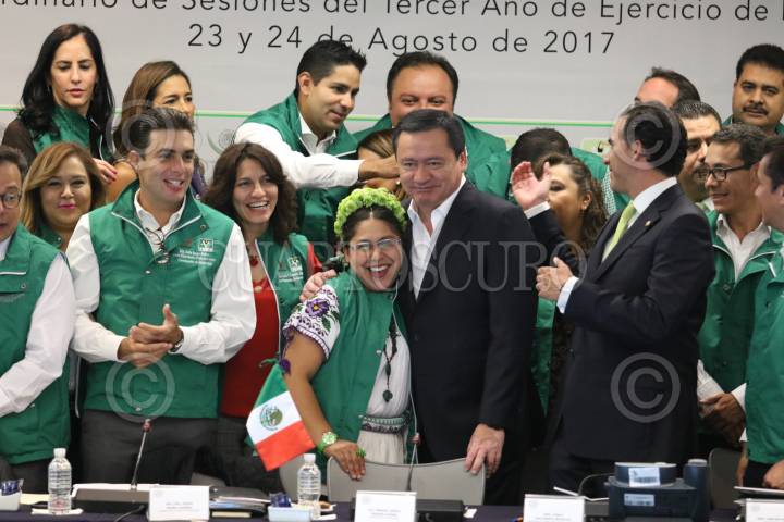 CIUDAD DE MÉXICO., 23AGOSTO2017.- Miguel Ángel Osorio Chong, Secretario de Gobernación asistió a la inauguración de la Plenaria del Partido Verde Ecologista de México realizado en las instalaciones de la Cámara de Senadores. FOTO: SAÚL LÓPEZ /CUATOSCURO.COM
