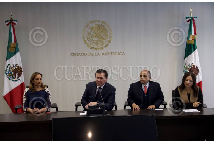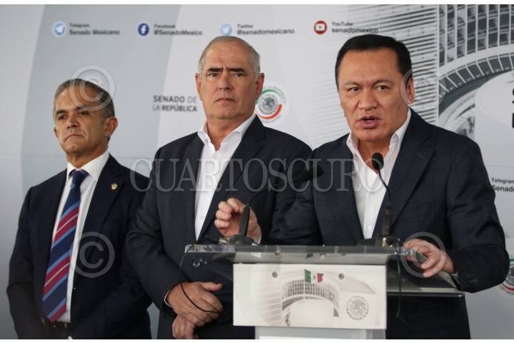Los coordinadores Miguel Ángel Mancera PRD, Miguel Osorio Chong PRI, Julem Rementeria PAN, Emilio Alvarez Icaza independiente, Clemente Castañeda Movimiento Ciudadano ofrecieron conferencia de prensa para mostrar su desacuerdo con la decisión de Morena sobre su candidato para la Mesa directiva.