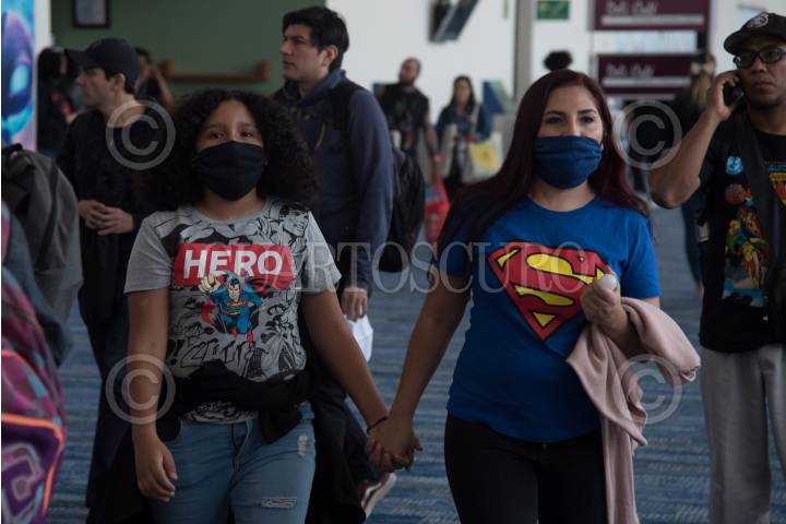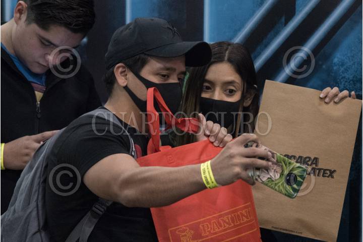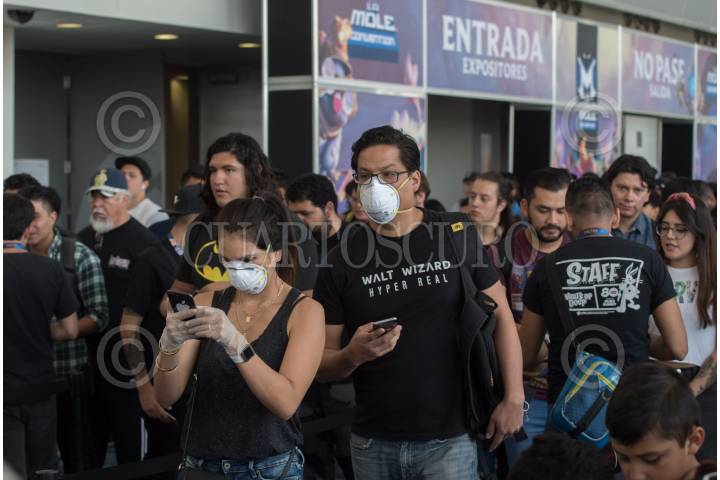Personas que asistieron al jóvenes que asistieron a la Edición 52 de La Mole Convention, celebrado en un importante centro de convenciones, portaron cubrebocas como medida de prevención ante la confirmación de más casos de coronavirus (COVID-19) en l