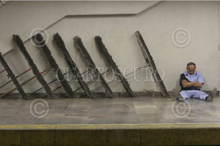 MÉXICO, D.F., 26NOVIEMBRE2012.- Un empleado de una empresa de Outsorsing de limpieza, que dá servicio al sistema de transporte colectivo Metro, duerme una siesta en el anden de la estación Chapultepec. FOTO: JUAN PABLO ZAMORA/CUARTOSCURO.COM