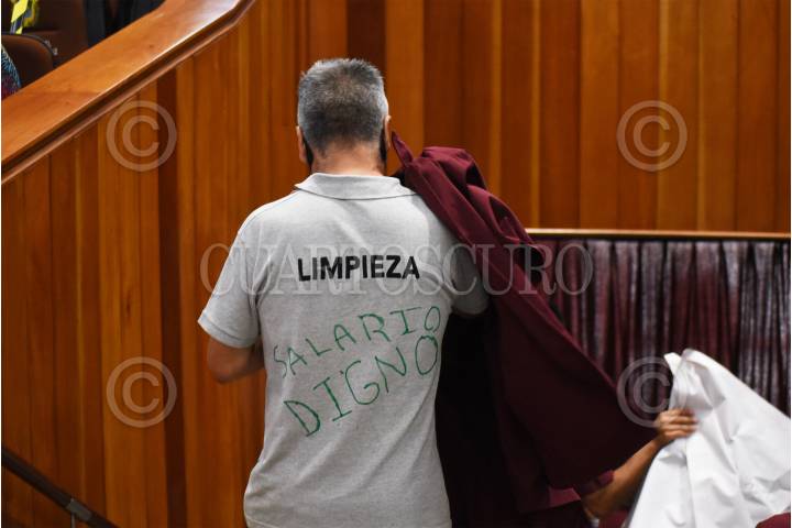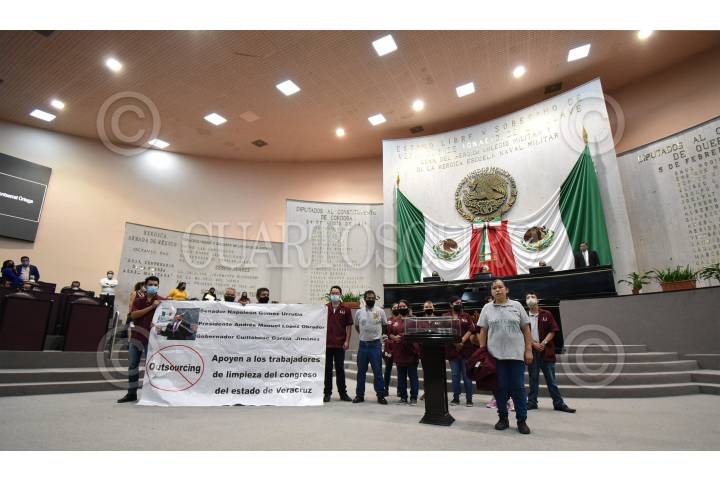 Personal de limpieza que actualmente están contratados bajo el régimen de Outsourcing exigieron al Congreso del Estado de Veracruz un contrato laboral que les otorgue las prestaciones laborales de ley.