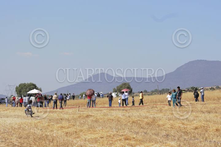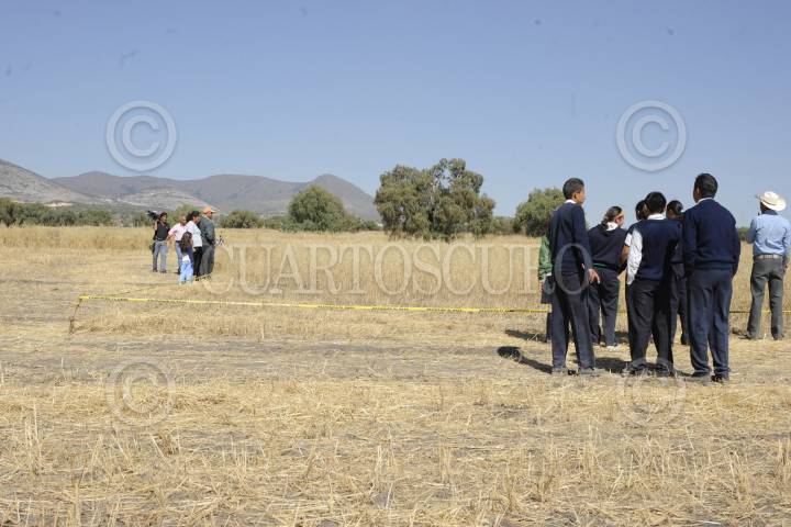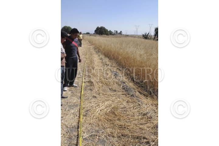 ZUMPANGO, ESTADO DE MÉXICO, 25NOVIEMBRE2011.- Pobladores de Hueytoxtla en el municipio de Zumpango se alertaron ante la aparición de algunas figuras como una estrella y algunos círculos en los sembradíos de cebada. del ejido conocido como Tierra Blanca. Aprovechando de esta situación el encargado de dicho predio se dedico a cobrar hasta 2,500.00 pesos por permitir hacer fotografías o vídeos. FOTO: LUIS CARBAYO/CUARTOSCURO.COM