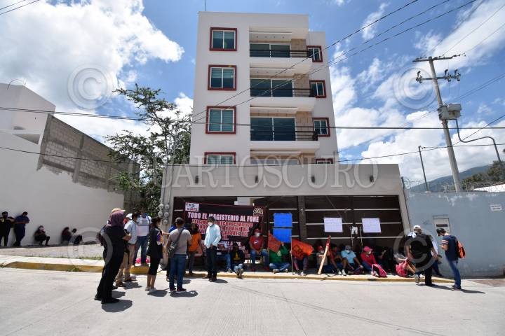Protesta de maestros integrantes de la CETEG en exigencia de entrega de oxígeno medicinal gratuito para aquellos trabajadores de escasos recursos durante la pandemia por Covid-19.