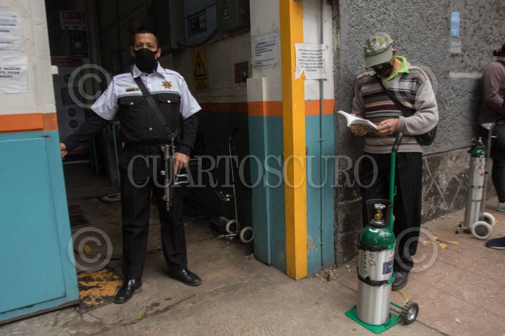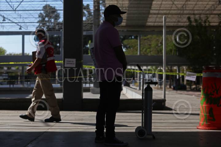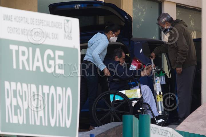 Un hombre con oxígeno medicinal llega para ser atendido al Triage Respiratorio del Centro Médico Siglo XXI.