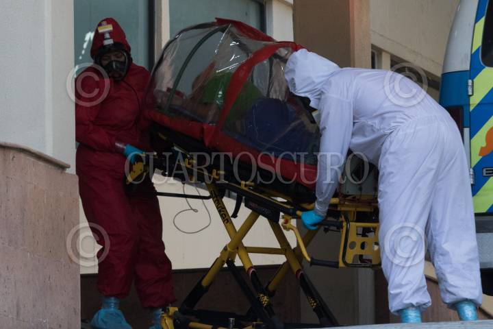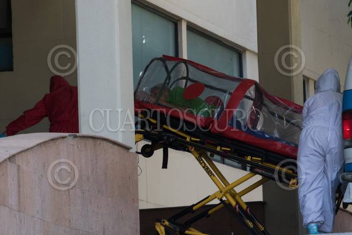 Un hombre de la tercera edad con síntomas de Covid-19 es ingresado al Triage Respiratorio del Centro Médico Siglo XXI.