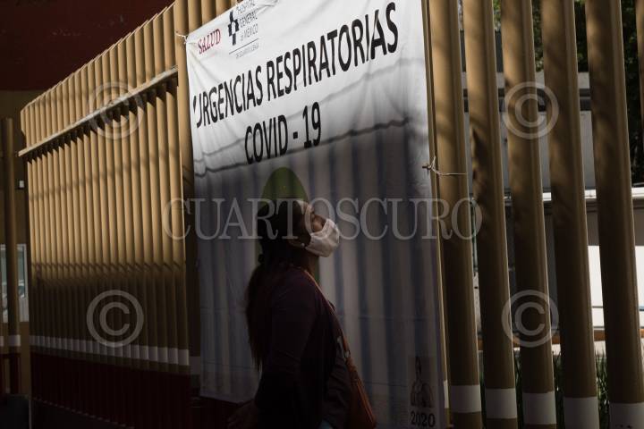 Un mujer espera noticias de su familiar quien fue ingresado momentos antes al Área de Covid-19 del Hospital General.