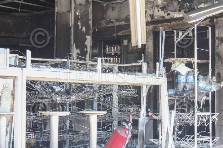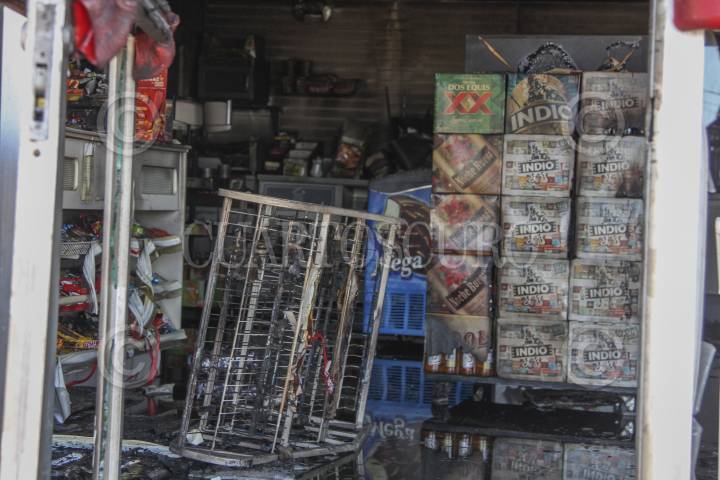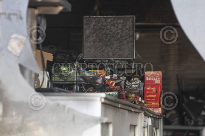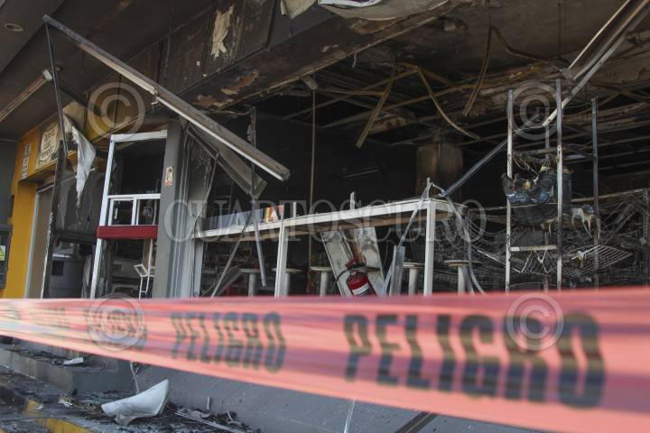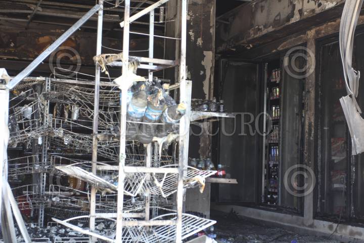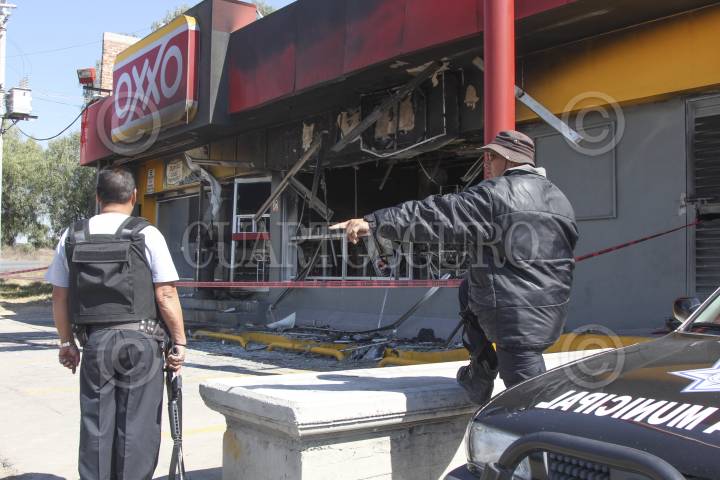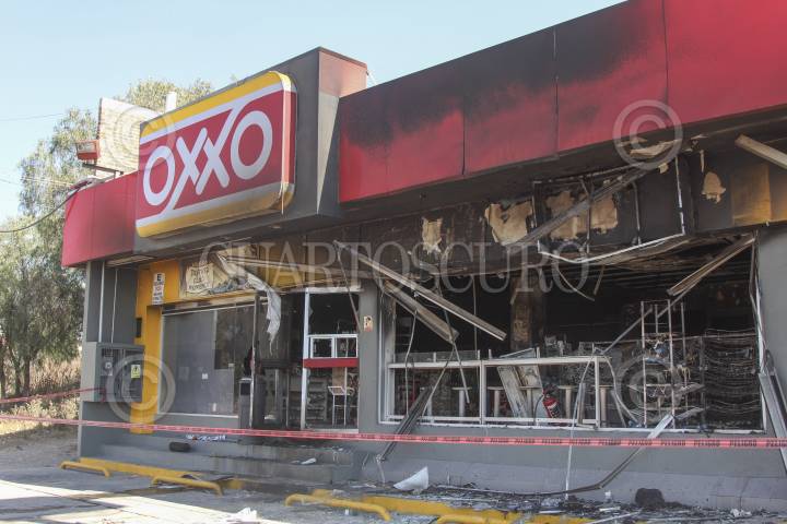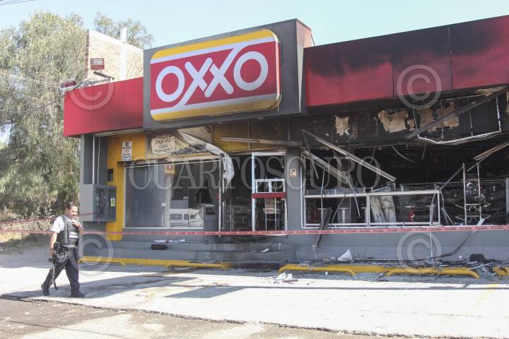 LOS REYES ACOZAC, ESTADO DE MÉXICO; 20ENERO2014.- Continúan resguardados por elementos de corporaciones policíacas las tiendas OXXO que fueron atacadas e incendiadas la noche de ayer por sujetos armados en el estado de Hidalgo y Estado de México. FOTO: SAÚL LÓPEZ /CUARTOSCURO.COM
