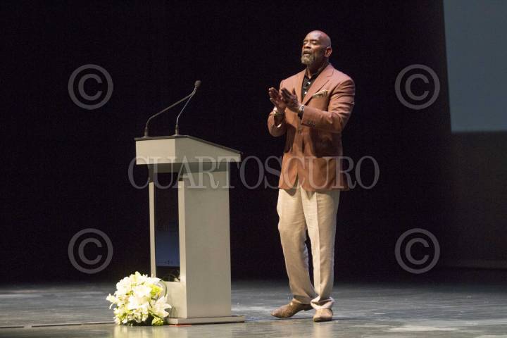 MONTERREY, NUEVO LEÓN, 19SEPTIEMBRE2016.- El empresario estadounidense Christpher Gardner acudió al Pabellón M para ofrecer una conferencia de testimonio de vida como parte de las actividades del aniversario 420 de la ciudad de Monterrey. FOTO: GABRIELA PÉREZ MONTIEL /CUARTOSCURO.COM