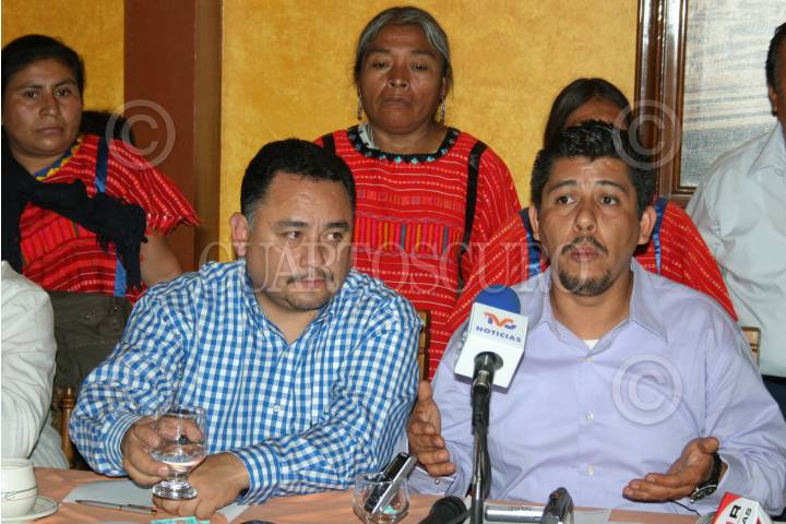 MÉXICO, D.F., 11JUNIO2008.- David Arebalo Mendez, Juan Cruz Flores y Eva Ezpinoza, Integrantes del Frente Nacional de Comercio, pidieron a Joel Ortega dejar a un lado los operativos realizados contra los vendedores de ropa de paca como así los denominan y llegar a el dialogo, esto durante una conferencia de prensa que dio dicho grupo en un restaurante del Zocalo capitalino. FOTO: RICARDO CASTELAN /CUARTOSCURO.COM