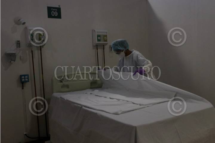 Una médica tiende una cama para pacientes con Covid-19 en el Pabellón de Terapia Intensiva en el Hospital de Expansión Autódromo Hermanos Rodríguez