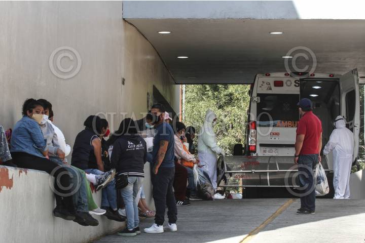 Pese a riesgo de contagio por COVID-19, personas permanece aglomeradas en él área de urgencias del Hospital de los Venados. FOTO: ROGELIO MORALES /CUARTOSCURO.COM