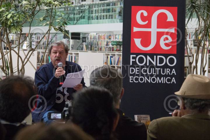 Paco Ignacio Taibo II, director del fondo de Cultura Económica (FCE) durante la entrega de la colección “21 para el 21” del FCE a la Secretaría de Relaciones Exteriores.